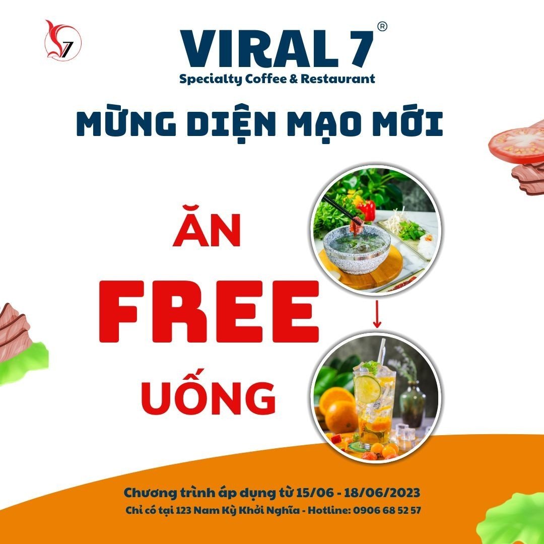 Viral 7 Coffee & Restaurant nay đổi mới thành “Specialty Coffee & Restaurant” đã quen thuộc với nhiều khách hàng tại Tây Ninh với không gian sang trọng, từng món ăn, thức uống đều tập trung vào chất lượng cao và hướng tới sức khoẻ. Không dừng lại ở đó, chuyển mình với diện mạo mới, nâng cấp chất lượng dịch vụ phục vu, Viral 7 Tây Ninh mời quý khách hàng tiếp tục ủng hộ từ ngày 15-18/06/2023.